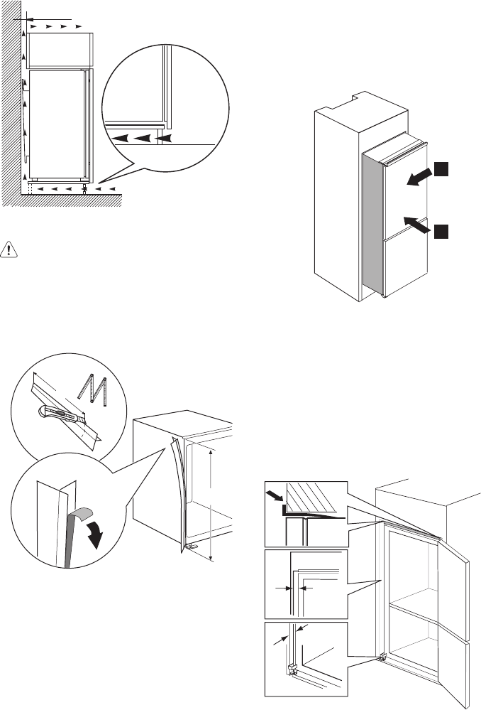 3. Tilpas køleskabet i nichen.